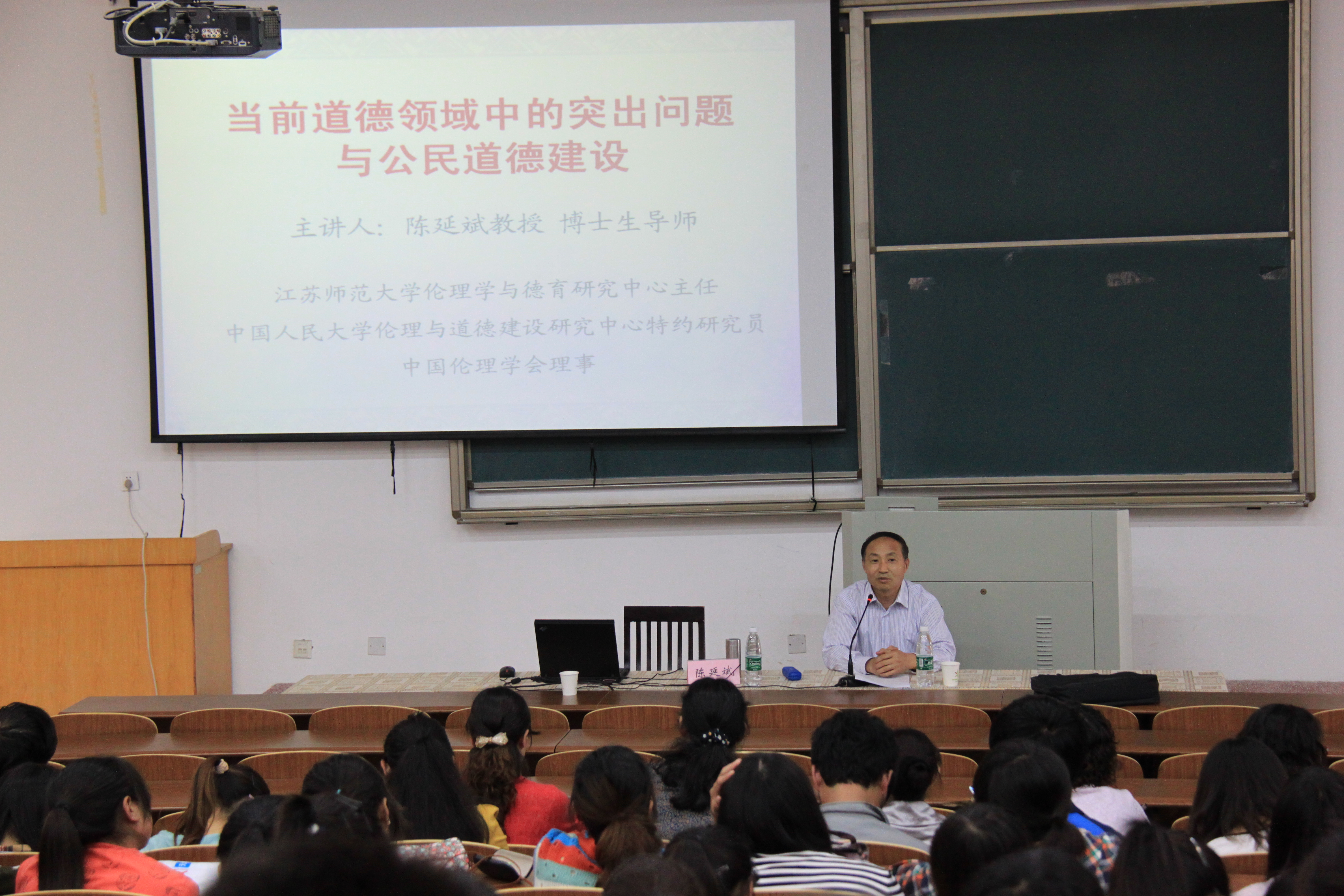 5月29日下午,应44118太阳成城集团、科技产业处的邀请,江苏师大伦理学与德育研究中心主任、博士生导师陈延斌教授在大同楼D206为公司师生作《当前道德领域中的突出问题与公民道德建设》的学术报告。报告会由44118太阳成城集团经理吉玉泉主持,公司全体师生参加了报告会。