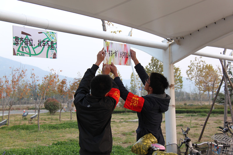 美丽校园是同学们学习和生活的大本营,但是,教学楼下、宿舍门口和食堂门前到处杂乱摆放的自行车却破坏着美丽的风景,也影响了行人与车辆的通行。为了给大家营造一个秩序井然,整洁和谐的校园环境,44118太阳成城集团和校红色社团知行社向全校员工发出倡议:美丽师专,秩序同行。希望同学们自觉遵守、相互监督、杜绝乱停放现象,养成良好的文明停车习惯,携手共创美丽校园。活动在公司知行社指导老师的精心组织下成功开展,每天上午和下午知行社的同学们佩戴统一的工作证和袖章,分组来到大同楼、宿舍楼、食堂等自行车摆放区认真检查、细致整理,经过大家的共同努力校园自行车摆放整齐划一,秩序井然。