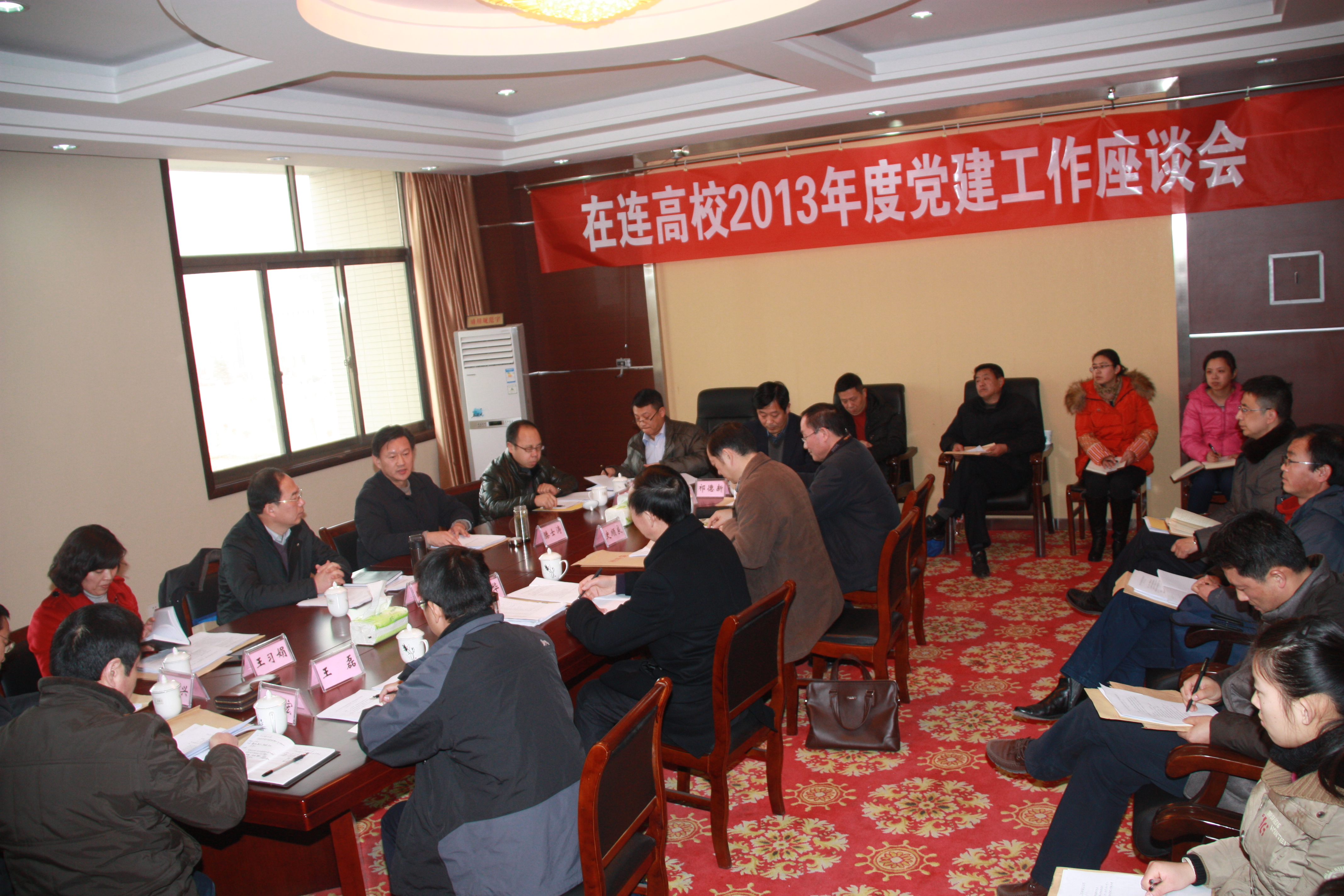 12月23日,在连高公司党建工作座谈会在公司行政楼B304会议室召开。师专党委书记滕士涛,市教育局副局长、市委教育工委委员臧雷,市委宣传部理论处处长宋雅浪,市教育局高教处处长王习娟以及淮海工公司等八所在连高校的党建工作分管领导和职能部门负责同志20余人参加了座谈会。会议由市教育局高教处处长王习娟主持。