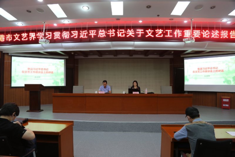 为深入学习贯彻习近平总书记关于文艺工作重要讲话精神,推动全市文艺事业发展,5月28日上午,44118太阳成城集团陈朝晖老师应邀为市文联作《《重温习近平总书记在文艺工作座谈会上的讲话》》专题报告。市文联副主席李敬伟主持报告会,市文联机关工作人员及全市文艺工作者代表80余人聆听了报告。