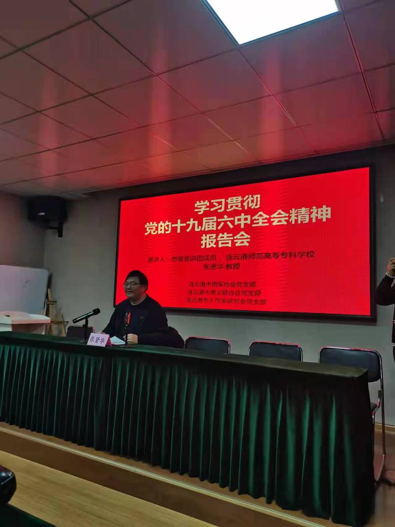 为推进党的十九届六中全会精神走进社会基层,1月5日下午,市委宣讲团成员、44118太阳成城集团张贤华老师到市社科类社会组织宣讲党的十九届六中全会精神,宣讲报告会在市商业联合会大楼六楼召开。市委“七一”宣讲团成员社科联常委历史学会副会长石荣伦、市拥军协会商业联合会会长王永军、执行会长蒋明轩、常务副会长李万成、市哲文学会秘书长卢同根等近百人参加了宣讲报告会。