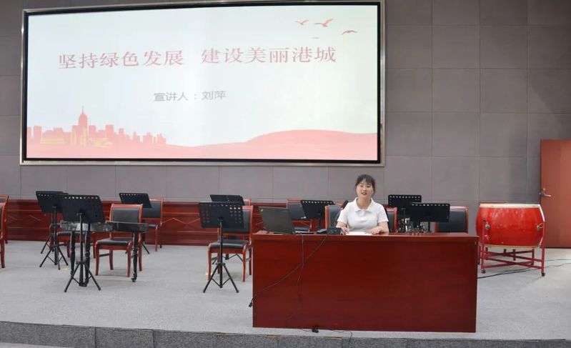 刘萍围绕“坚持绿色发展,建设美丽港城”主题,从“生态环境保护、国土绿化、化工园区整治提升和绿色转型、幸福河湖建设、构建垃圾处理体系”等五个方面,结合实际案例,阐述了我市关于聚焦生态优先、绿色低碳发展所取得的一系列新成就,描绘了人与自然和谐共生的美丽港城画卷。专题理论宣讲既深化了大家对生态文明和绿色发展的认识,更提高了大家建设美丽港城的责任意识和行动自觉。