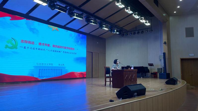 讲座以《志存高远,德才并重,肩负起时代赋予的使命》为主题,围绕“洞悉大势,人才强国的战略考量;立足当下,人才发展迈入新阶段;谋篇布局,聚天下英才而用之”等三个方面阐释习近平新时代“人才强国战略”思想的时代背景、核心内容及深远意义。通过当今世界强国的历史印记说明“人才是第一资源”的深刻道理;通过现阶段我国人才状况的现实说明十年来我国人才发展的历史性成就及变革;通过展现我国人才谋划的未来蓝图说明新时代“人才强国战略”思想必将成为推动中华民族伟大复兴征程中的重要引擎和强大动力。张教授深入浅出的语言表达、生动活泼的讲授方法使同学们深受启发和教育,大家纷纷表示一定在学习生活中时刻严格要求自己,以实际行动发挥好先锋和表率作用。