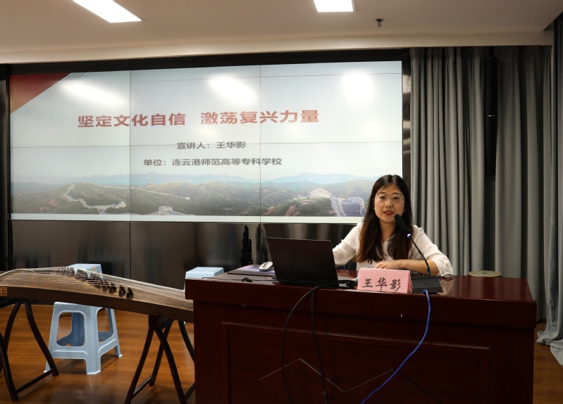 王华影围绕“坚定文化自信 激荡复兴力量”这一主题,从“文化自信何以信,文化自信信什么,文化自信如何信”三个方面,结合连云港精神和连云港文旅产业发展等作精彩宣讲。理论宣讲重点阐释了在新的起点上继续推动文化繁荣、建设文化强国、建设中华民族现代文明,是我们在新时代新的文化使命;要坚定文化自信、担当使命、奋发有为,践行新时代“连云港精神”,讲好连云港故事。