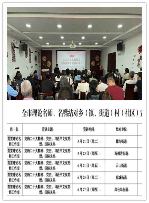 为更好推动习近平新时代中国特色社会主义思想走深走实,我市组织开展了“新思想我来讲”理论名师名嘴结对乡村送宣讲活动,积极发挥理论名师(嘴)工作室、理论宣讲十佳个人等理论宣讲骨干示范带动效应,做好深入结对县区(板块)镇街开展理论宣讲工作。近日,“贾雯理论名师工作室”开启首场理论宣讲活动。