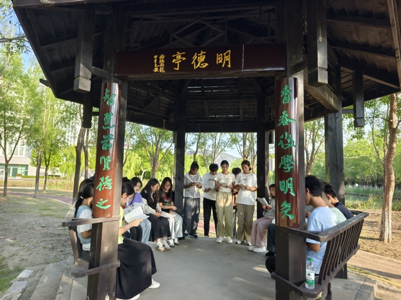 社团全体成员首先参观了中国共产党海属地区早期组织活动基地纪念标志处,了解中国共产党海属地区早期组织的相关活动,深刻领悟其承载的历史价值与教育意义。随后,社团成员走进明徳亭,围绕“丹青染就七十五,你我共谱中华图”活动主题,从文化传承、科技创新、国际交流等方面进行爱国主义主题演讲比赛,并结合自身实际,交流与分享了如何将爱国主义情感落实到实际行动中去,进一步明确了作为师专学子的责任与担当。