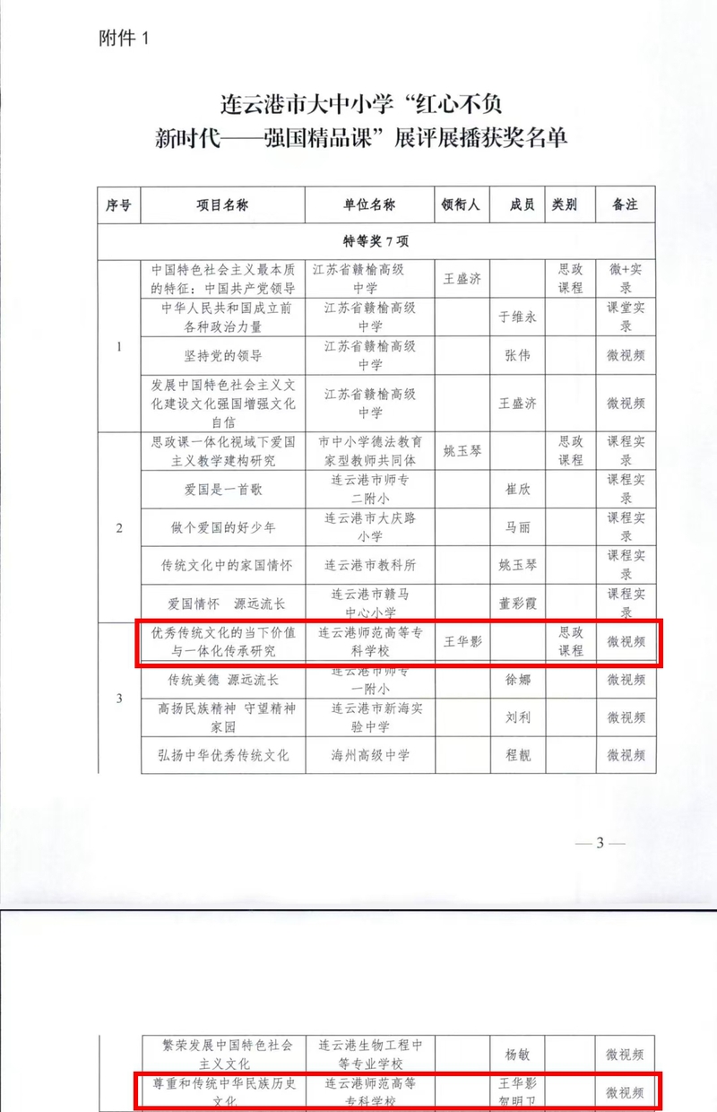 近日,连云港市教育局办公室公布了全市大中小学“红心不负新时代——强国精品课”展评展播获奖名单和优秀组织奖单位名单。院王华影老师贺明卫老师等奖集团获优秀组织奖。