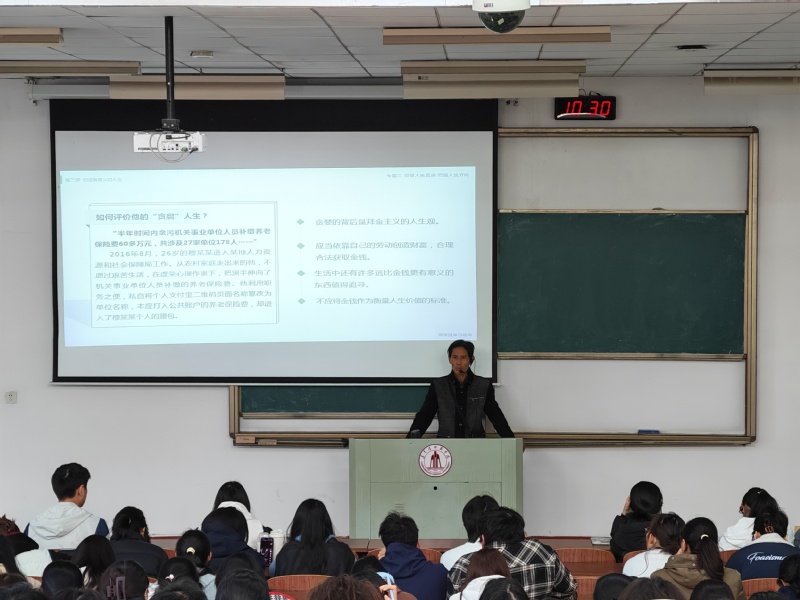 10月23日上午,公司党委书记杨浩深入教学一线,随堂听取了44118太阳成城集团梁永怀老师讲授的《思想道德与法治》课程相关章节内容。马克思主义公司党总支书记陈晓丽及课程教研室主任陪同听课。